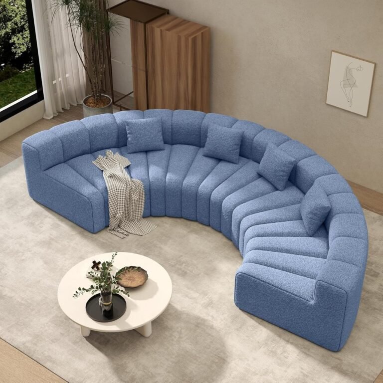 Give your living room an instant upgrade with this oversized curved velvet cloud couch — a spacious 4-seater modular sectional that feels just right for everyday life. Its soft velvet upholstery and cloud-like cushions invite you to relax, stretch out, or settle in for movie night, without ever worrying about assembly. The gentle curve of the design helps make your space feel more welcoming and connected, whether you’re entertaining guests or enjoying quiet time at home. With its light blue hue and modern charm, it blends beautifully into contemporary spaces while offering comfort you’ll actually use.