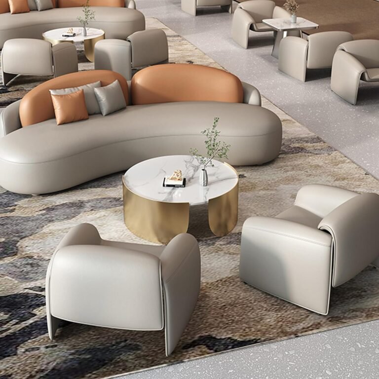 Bring both comfort and style to your living space with this modern sectional sofa set that includes a coffee table and matching armchairs. The elegant color-blocking design in Napa leather and plush latex foam cushions makes it perfect for lounging, movie nights, or long conversations with guests. With extra-wide seating and thoughtfully paired pieces, this set creates a cozy yet stylish gathering spot in your living room or entertainment area. It’s modern without feeling cold — a place you actually want to relax in every day.